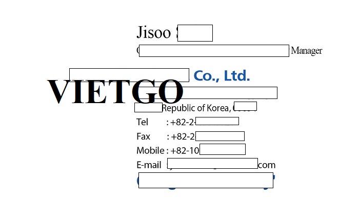 Trao đổi với VIETGO, vị khách hàng bày tỏ mong muốn được hợp tác với các nhà cung cấp tại đây. Vì vậy, Quý nhà cung cấp nào có thể đáp ứng cho đơn hàng nhập khẩu của cô Jisoo, vui lòng liên hệ với vị khách hàng theo thông tin được cung cấp dưới đây.