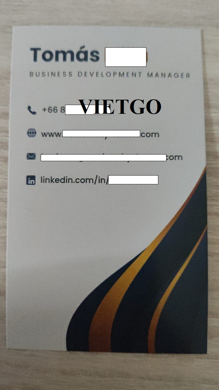 Chia sẻ về nhu cầu hiện tại, ông Tomas cần nhập khẩu sản phẩm mủ cao su để phục vụ dự án kinh doanh mới. Ông đã liên hệ cũng như trao đổi với Vietgo về đơn hàng và rất mong sẽ nhận được báo giá sớm từ phía Nhà cung cấp. Qua cuộc trò chuyện cũng như trao đổi kỹ lưỡng về đơn hàng, Vietgo nhận thấy ông Tomas là một vị khách hàng tiềm năng và là cơ hội để hợp tác lâu dài với các Nhà cung cấp châu Á. Vậy nên, Quý nhà cung cấp nào có thể đáp ứng được yêu cầu của vị khách hàng thân thiện này, vui lòng liên hệ và gửi báo giá cho ông qua trong thời gian sớm nhất có thể qua địa chỉ email dưới đây.