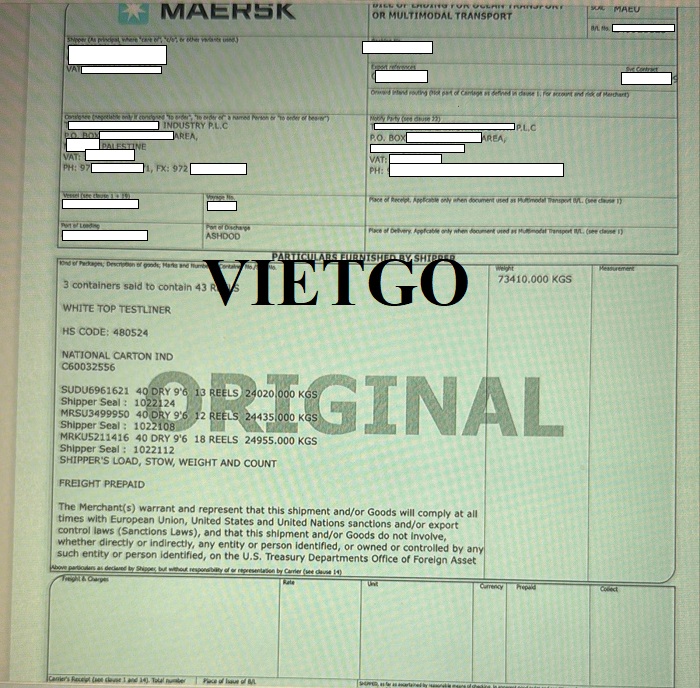 Ông Asem là vị khách hàng tiềm năng theo chia sẻ với hơn 18 năm kinh nghiệm trong lĩnh vực xuất nhập khẩu. Công ty ông có nhiều kinh nghiệm trong ngành giấy và gỗ do đó có thể tự sản xuất pallet đóng hàng. Bên cạnh đó, công ty cũng đang tìm cách cải thiện xưởng pallet của mình và sản xuất pallet không chỉ để sử dụng mà còn để phân phối. Ông Asem muốn nhập 1 container cho đơn hàng đầu tiên, nếu thành công, công ty ông sẽ đặt thêm nhiều container hơn để tiết kiệm thời gian và chi phí. Dưới đây là hình ảnh bản vận đơn nhập khẩu giấy công ty đã nhập khẩu từ Bỉ tới Israel.