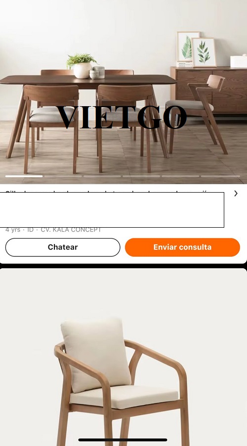 Chia sẻ về đơn hàng hiện tại, cô Pamela cần nhập khẩu sản phẩm bộ bàn ghế ăn để phục vụ dự án kinh doanh sắp tới. Cô đã liên hệ cũng như trao đổi với Vietgo về đơn hàng và rất mong sẽ nhận được báo giá sớm từ phía Nhà cung cấp. Quý nhà cung cấp nào có thể đáp ứng được đơn hàng của cô Pamela vui lòng liên hệ qua địa chỉ liên hệ dưới đây.