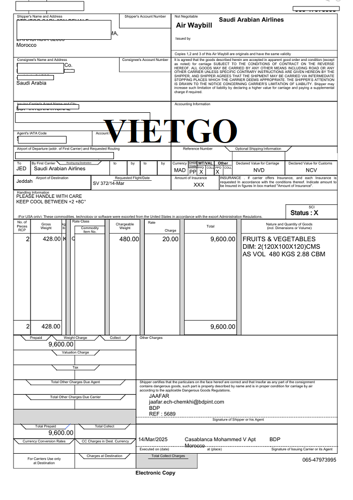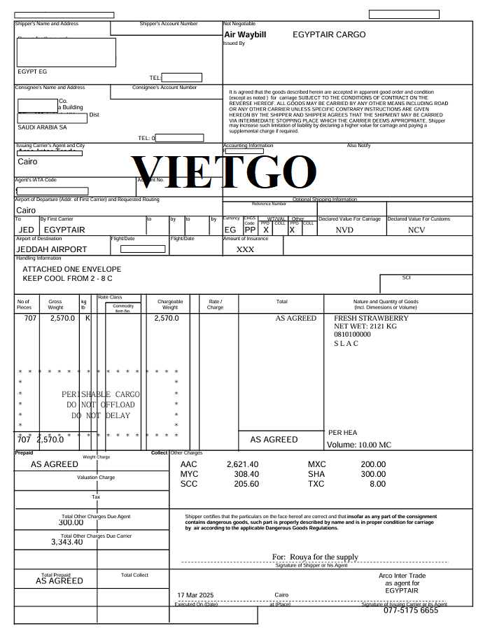 Hình ảnh vận đơn nhập khẩu dâu tây từ Ai Cập