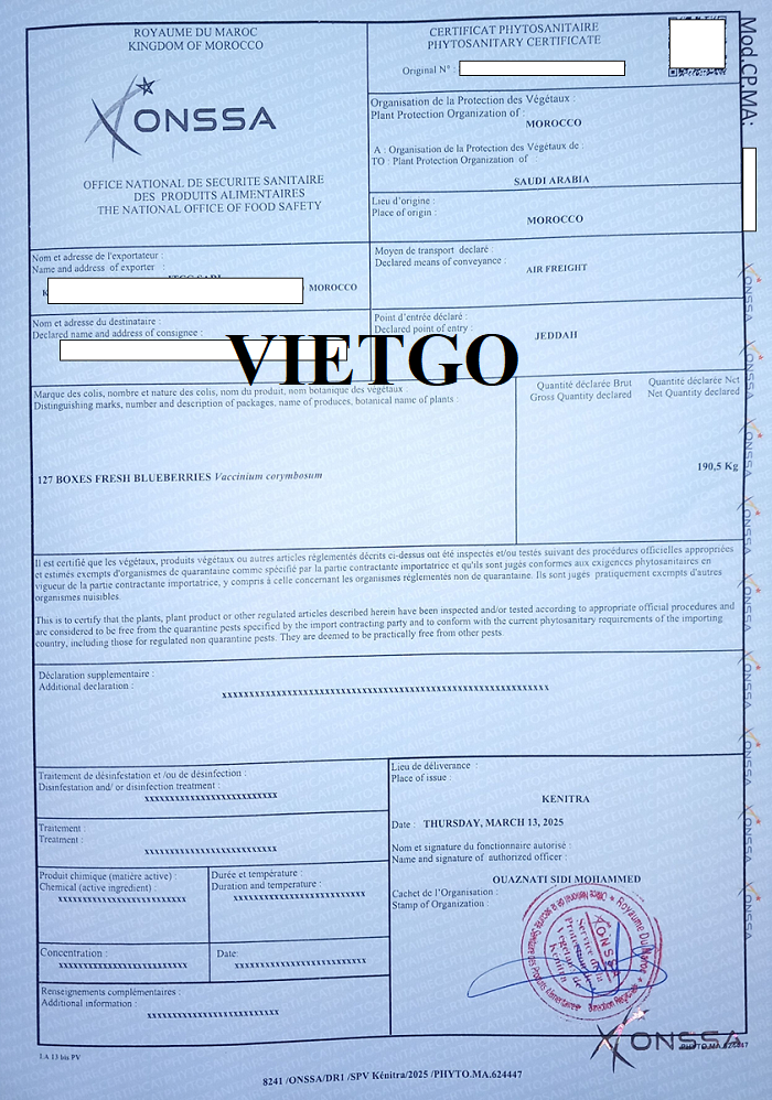 Hình ảnh vận đơn nhập khẩu từ Morocco