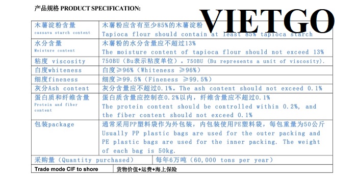 Opportunity for cooperation in exporting cassava starch to the Chinese market