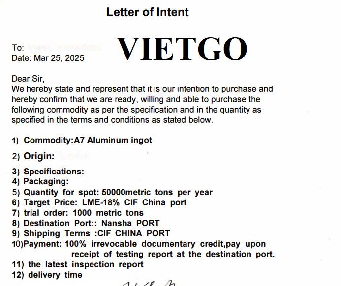 Bên cạnh đó, ông Max còn tham gia vào thị trường xuất nhập khẩu quốc tế với vai trò là trung gian, hỗ trợ khách hàng có nhu cầu mua bán hàng hóa từ nhiều quốc gia. Liên hệ với VIETGO cho đơn hàng nhập khẩu thỏi nhôm lần này, vị khách hàng bày tỏ mong muốn được kết nối với các nhà cung cấp tiềm năng, từ đó xây dựng mối quan hệ hợp tác lâu dài.