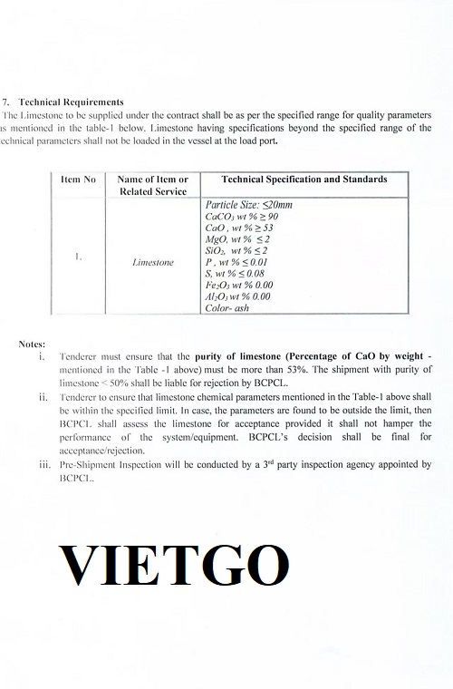 Vừa qua, VIETGO đã nhận được một lời đề nghị báo giá từ ông Islam – đại diện của công ty ██████████ - về đơn hàng xuất khẩu đá vôi sang thị trường Bangladesh.