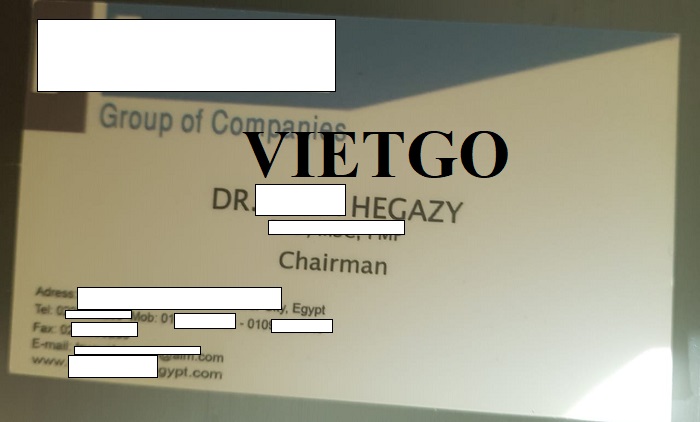 Ông Hegazy hiện đang đảm nhận vị trí Chủ tịch tại tập đoàn ██████████ với trụ sở chính được đặt tại thủ đô của Ai Cập, đã liên hệ với VIETGO cho đơn hàng nhập khẩu ngô