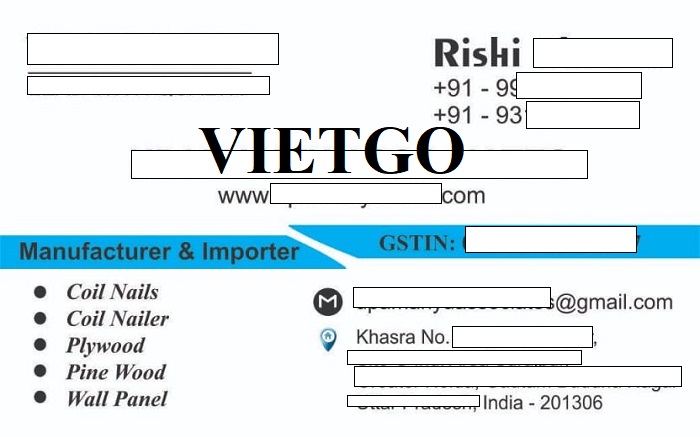 Ông Rishi ██████████ đã liên hệ với VIETGO và trao đổi về dự án nhập khẩu gỗ dán của mình. Ông Rishi chia sẻ: “██████████ được thành lập vào năm 2022 và đạt chứng nhận ISO 9001: 2015, chúng tôi là một trong những nhà sản xuất đinh cuộn hàng đầu tại ██████████. Chúng tôi chuyên cung cấp đinh cuộn chất lượng cao với giá cả cạnh tranh, đáp ứng nhu cầu đa dạng của thị trường trong nước và quốc tế. Danh mục sản phẩm của chúng tôi bao gồm: đinh phẳng mạ vàng, đinh vít, đinh vòng và đinh mạ kẽm, với đường kính từ 2,1 mm đến 3,5 mm và chiều dài từ 25 mm đến 125 mm. Chúng tôi cũng nhận gia công theo kích thước yêu cầu của khách hàng.