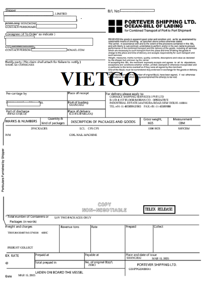 Dưới đây là hình ảnh bản vận đơn vị khách hàng đã nhập khẩu thành công sản phẩm đinh cuộn vào ngày 15 tháng 3 năm 2025 từ cảng Shanghai, Trung Quốc đến cảng Pipavav, Ấn Độ.