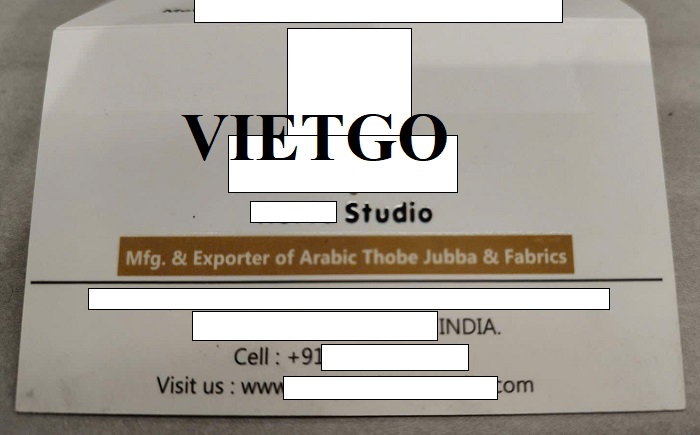 Chia sẻ với VIETGO, ông Tariq cho biết thêm: “Được thành lập vào năm 2005 tại ██████████, Ấn Độ), chúng tôi “██████████” là một nhà sản xuất, thương nhân và xuất khẩu nổi tiếng về nhiều loại vải Thobe Ả Rập, Áo phông nam, Áo sơ mi nam, Đồ trẻ em, Đồ ngủ Kurta nam, Chất liệu váy, Quần bó nữ, Saree lạ mắt, v.v. Dòng sản phẩm chúng tôi cung cấp được thiết kế theo xu hướng thời trang thịnh hành và được hoan nghênh rộng rãi vì thiết kế hấp dẫn, kiểu dáng hợp thời trang và độ bền cao. Chúng tôi đang xuất khẩu sản phẩm của mình sang nhiều quốc gia khác nhau như Anh, Hoa Kỳ, Nam Phi, Canada, Pháp, New Zealand, Đan Mạch, Mauritius, Úc, Kenya, Tây Ấn, Tây Ban Nha, Đảo FiJi, Hà Lan và các nước vùng Vịnh.