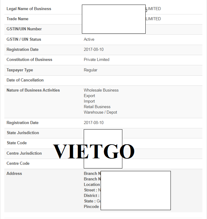 Địa chỉ trụ sở công ty: ██████████ Ấn Độ