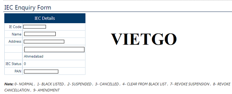 Hình ảnh thông tin giấy phép xuất khẩu của vị khách hàng