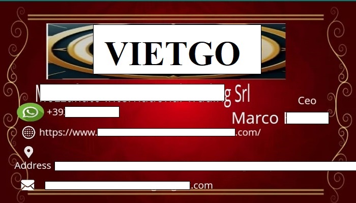 Ông Marco ██████████ - vị khách hàng của VIETGO lần này đại diện mua hàng đến từ Ý. Hiện tại ông đang là Giám đốc của công ty ██████████ Srl, có trụ sở tại Ý và Cộng hòa Dominica. Đây là công ty đại lý thương mại đã tham gia vào hoạt động xuất nhập khẩu trong nhiều năm qua. Công ty cam kết cung cấp các sản phẩm có chất lượng cao, những hiểu biết và phân tích thị trường chuyên sâu giúp khách hàng có thể lựa chọn được những hàng hóa tốt nhất. Với mạng lưới đối tác thương mại trải dài khắp châu Âu và Trung Đông, công ty đang mở rộng danh mục sản phẩm của mình thông qua việc nhập khẩu dầu hướng dương.