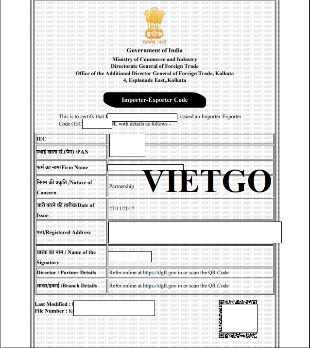 ██████████ là một doanh nghiệp được thành lập và hoạt động tại Ấn Độ, chuyên trong lĩnh vực xuất khẩu và nhập khẩu thương mại quốc tế. Công ty được cấp Mã số Doanh nghiệp Xuất nhập khẩu (IEC) ████████████████████bởi Tổng cục Ngoại thương (Directorate General of Foreign Trade) – Bộ Thương mại và Công nghiệp Ấn Độ, vào ngày 27/11/2017.