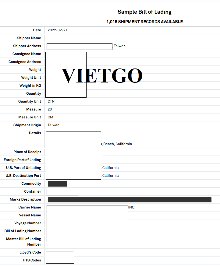 Hình ảnh vận đơn xuất khẩu sang thị trường Mỹ của công ty vị khách hàng