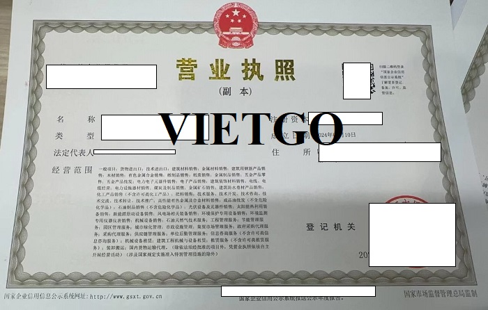 Hình ảnh giấy phép kinh doanh của công ty vị khách hàng