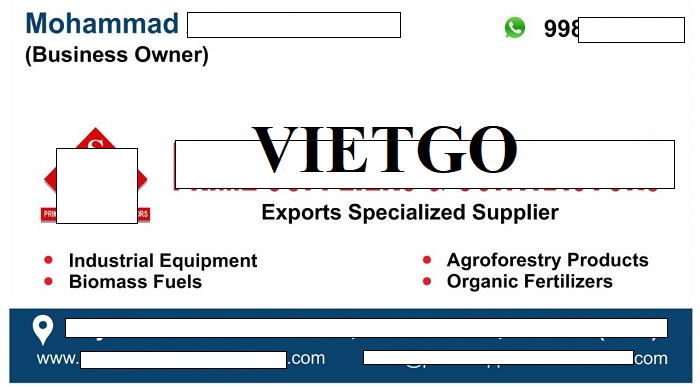 Trụ sở của công ty đặt tại ██████████, công ty không chỉ phục vụ thị trường nội địa mà còn hướng đến mở rộng xuất khẩu, cung cấp giải pháp hiệu quả cho các doanh nghiệp và tổ chức nước ngoài trong nhu cầu nhập khẩu các sản phẩm công nghiệp và nông nghiệp bền vững. Theo ông Mohammad chia sẻ: “Hiện tại tôi đang cần tìm nhà cung cấp uy tín cho sản phẩm gỗ vụn phế liệu cho các khách hàng của mình. Tôi đang tìm kiếm nguồn cung từ Việt Nam và mong muốn được kết nối với các nhà cung cấp trong dự án sawqps tới”. Nhận thấy ông Mohammad là người có kinh nghiệm nhập khẩu đây hứa hẹn sẽ mang đến cơ hội xuất khẩu đầy hấp dẫn cho các nhà cung cấp.