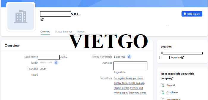 Được biết, ông Jorge là đại diện cho công ty ██████████. S.R.L. được thành lập vào năm 2000, có địa chỉ đăng ký tại ██████████. Được thành lập từ năm 2000, công ty ông chuyên cung cấp và phân phối đa dạng các sản phẩm sử dụng để đóng gói như giấy và miếng lót, sản phẩm từ bìa cứng, chai nhựa, màng bọc,.... ██████████. S.R.L. chủ yếu phục vụ cho lĩnh vực thương mại và công nghiệp trên toàn cầu. Hiện tại, công ty đang sở hữu cửa hàng văn phòng phẩm ██████████ tại Argentina và vẫn đang không ngừng mở rộng lĩnh vực hoạt động của mình để đưa công ty phát triển, tiếp cận nhiều hơn với đa dạng đối tượng khách hàng.
