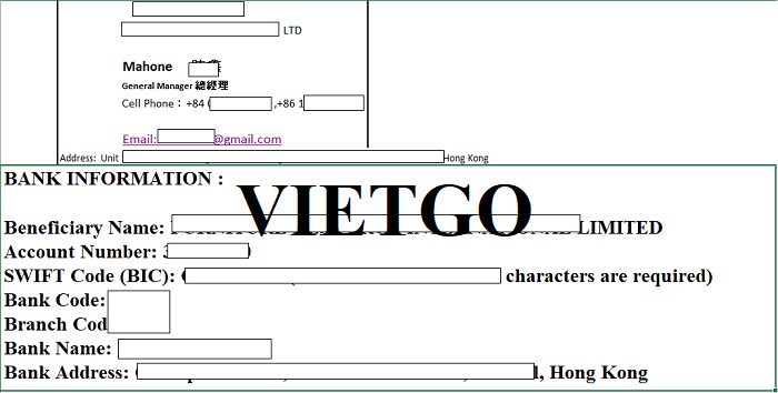VIETGO xin gửi tới Quý nhà cung cấp thông tin đơn hàng, VIETGO chúc Quý vị có được một thương vụ thành công!