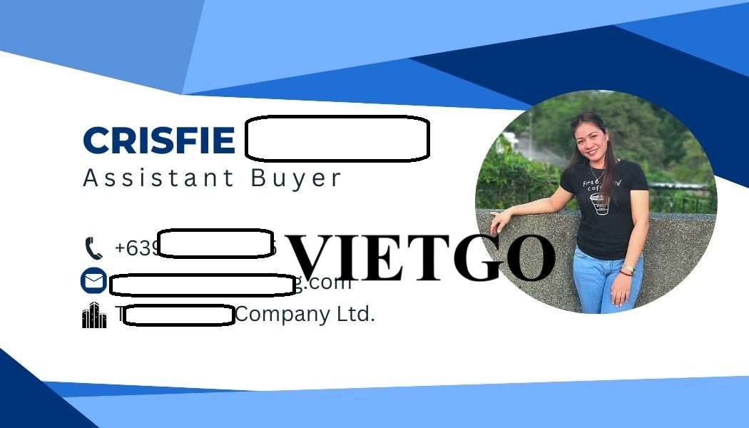 Chia sẻ về đơn hàng hiện tại, cô Crisfie cần nhập khẩu sản phẩm gia dụng gỗ để phục vụ dự án kinh doanh sắp tới. Cô đã liên hệ cũng như trao đổi với Vietgo về đơn hàng và rất mong sẽ nhận được báo giá sớm từ phía Nhà cung cấp. Quý nhà cung cấp nào có thể đáp ứng được đơn hàng của cô Crisfie vui lòng liên hệ qua địa chỉ liên hệ dưới đây.
