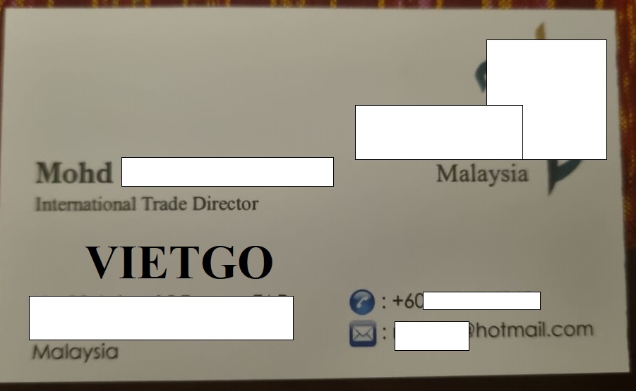 Ông Mohd ██████████ - vị khách hàng của VIETGO lần này đại diện mua hàng đến từ Malaysia. Hiện tại, ông là Giám đốc thương mại quốc tế tại công ty có trụ sở ở Selangor, Malaysia. Ông đang có nhu cầu nhập khẩu một số lượng nhỏ hạt cà phê xanh trước để kiểm tra chất lượng. Nếu giá cả và chất lượng sản phẩm tốt, ông sẽ nhập khẩu nhiều hơn với tần suất thường xuyên, dựa theo nhu cầu của khách hàng nội địa. Ông chia sẻ rằng, ông là một người rất đam mê cà phê và tìm hiểu rất kỹ về thị trường xuất khẩu để có thể kết nối với nhiều nhà cung cấp tiềm năng tại các quốc gia khác.