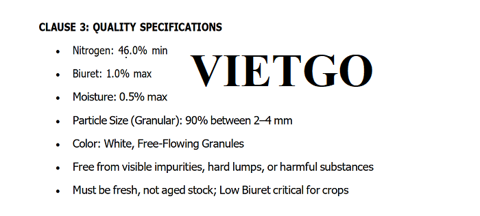 Với đơn hàng lần này, ông Mohsen cần tìm các nhà cung cấp có thể xuất khẩu phân bón urea sang thị trường Thái Lan và UAE. Đơn sẽ là các đơn hàng nhập khẩu với số lượng 5,000 tấn/tuần. Vì vậy, vị khách hàng đã lựa chọn liên hệ với VIETGO để có thể nhanh chóng tìm được các nhà cung cấp phù hợp.