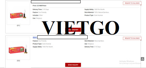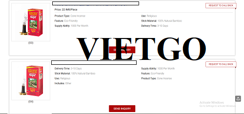 VIETGO đã nhận được một lời đề nghị báo giá từ ông ██████████ - đại diện của ██████████ - về đơn hàng nhập khẩu bột hương cho công ty của mình tại Ấn Độ.