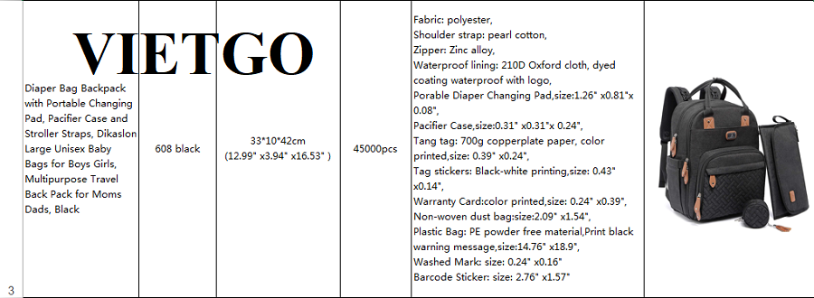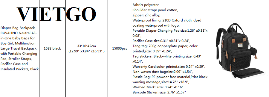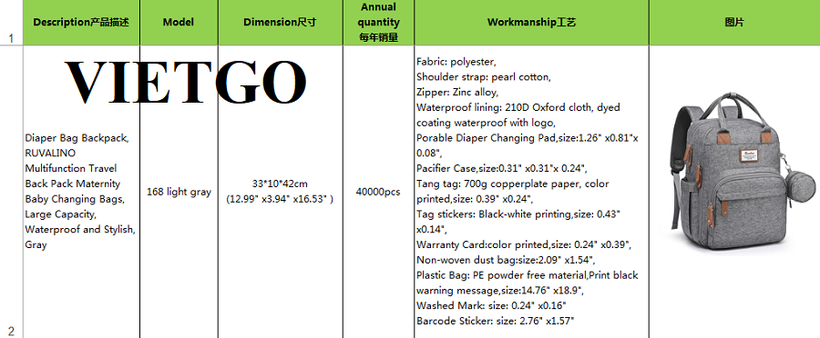 VIETGO xin gửi tới Quý vị thông tin đơn hàng nhập khẩu balo của ông Jack – vị khách hàng tiềm năng đến từ Trung Quốc.