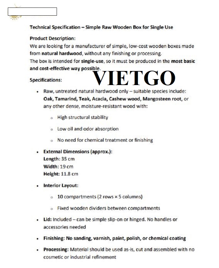 Chia sẻ về đơn hàng hiện tại, cô Liat cần nhập khẩu sản phẩm hộp gỗ để phục vụ dự án kinh doanh sắp tới. Cô đã liên hệ cũng như trao đổi với Vietgo về đơn hàng và rất mong sẽ nhận được báo giá sớm từ phía Nhà cung cấp. Quý nhà cung cấp nào có thể đáp ứng được đơn hàng của cô Liat vui lòng liên hệ qua địa chỉ liên hệ dưới đây.