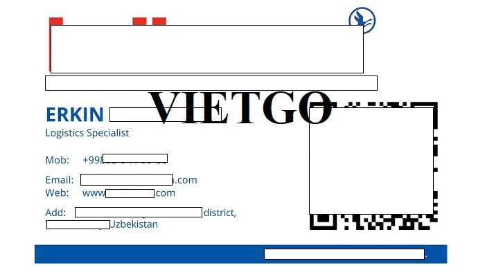Ông Erkin ██████████ - vị khách hàng của VIETGO lần này đại diện mua hàng đến từ Uzbekistan. Hiện tại ông đang là Chuyên gia hậu cần của công ty ██████████, có trụ sở tại Uzbekistan. Đây là công ty được thành lập vào năm 1871, chuyên cung cấp các dịch vụ hậu cần quốc tế cho khách hàng tại đây. Với các sản phẩm mạnh mẽ của mình là vận tải hàng không, vận tải đường biển, đường bộ và đường sắt theo hợp đồng, công ty luôn cung cấp giải pháp phù hợp cho các yêu cầu hậu cần phức tạp của khách hàng và dựa vào các dịch vụ kỹ thuật số để có được sự minh bạch tối đa và chuỗi cung ứng hiệu quả hơn.