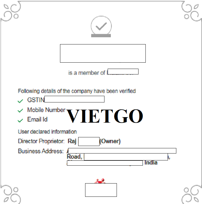 Địa chỉ công ty: ██████████, Ấn Độ