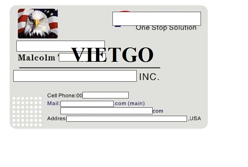 Ông Malcolm là Giám đốc thu mua (Sourcing Director) của công ty ██████████ Inc., một doanh nghiệp hoạt động với khẩu hiệu “One Stop Solution” – cung cấp giải pháp trọn gói cho các nhà bán lẻ tại Hoa Kỳ. ████████████████████có văn phòng tại Ontario, California, Hoa Kỳ, và ông Malcolm thường xuyên làm việc với các đối tác tại Trung Quốc và Đông Nam Á để tìm nguồn cung ứng hàng hóa chất lượng, đặc biệt là các mặt hàng phục vụ tiêu dùng và chuỗi bán lẻ lớn.