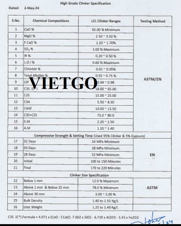 Vừa qua, VIETGO đã nhận được một lời đề nghị báo giá từ ông Paul – đại diện của ██████████ Ltd - về đơn hàng xuất khẩu clinker cho khách hàng của mình.