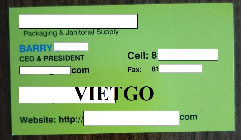 Qua cuộc trò chuyện và chia sẻ, VIETGO nhận thấy ông Barry là vị khách hàng có phong cách làm việc nghiêm túc. Ở tuổi 85, ông vẫn đang điều hành công việc kinh doanh với tâm huyết và sự chuyên nghiệp sau hơn 40 năm hoạt động trong ngành cung cấp vật tư đóng gói và thiết bị vệ sinh công nghiệp. Vậy, chúng tôi mong Quý nhà cung cấp quan tâm tới đơn hàng và có mong muốn hợp tác với ông Barry, vui lòng sớm liên lạc với ông qua thông tin dưới đây: