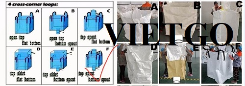 + Miệng bao mở hoàn toàn, đáy có ống xả, 4 quai xách được may chắc chắn tại 4 góc túi (B)