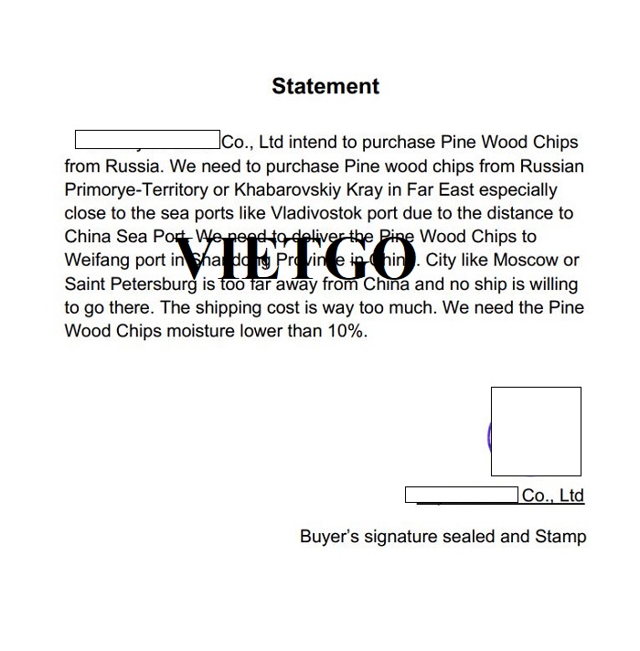Cô Madina hiện đang làm việc tại công ty ██████████ Co., Ltd là một công ty thương mại quốc tế năng động có trụ sở tại Hồng Kông, chuyên hoạt động trong lĩnh vực nhập khẩu nguyên liệu thô phục vụ cho ngành công nghiệp sản xuất và chế biến. Một trong những mặt hàng chủ lực hiện nay mà công ty đang tìm kiếm để nhập khẩu với số lượng lớn là dăm gỗ thông (Pine Wood Chips), đặc biệt từ thị trường Việt Nam – một trong những nguồn cung ứng nguyên liệu gỗ và ổn định trên thế giới.