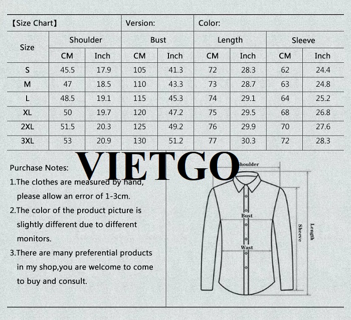 VIETGO vừa nhận được thông tin đơn hàng của anh Abbas về nhu cầu nhập khẩu áo sơ mi để phục vụ việc kinh doanh của anh.
