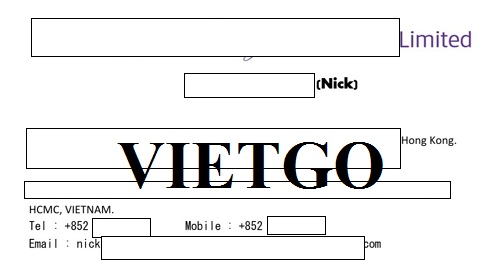 Ông Nick là đại diện của công ty ██████████ – có trụ sở chính tại ██████████ trên đường Sha Tsui Raad của Hong Kong. Đặc biệt, công ty ██████████ cũng có văn phòng đặt tại ██████████, Thành phố Hồ Chí Minh, Việt Nam.