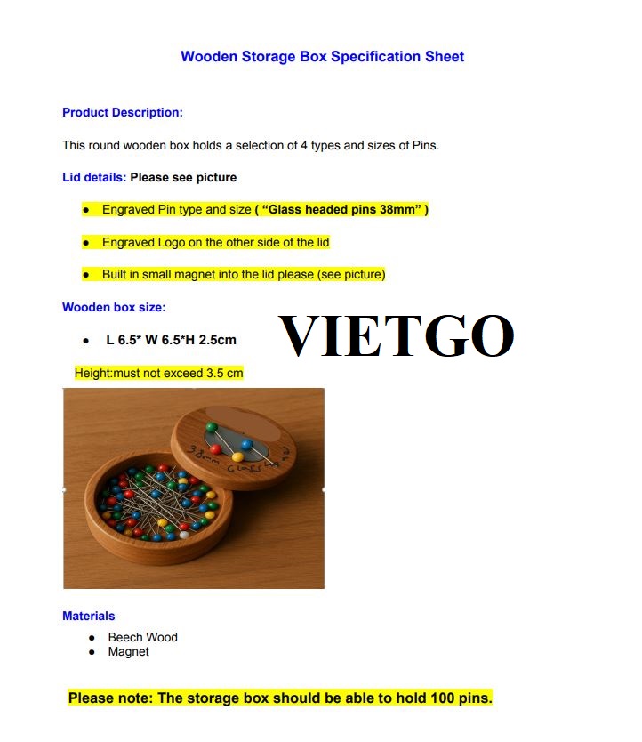 Thương vụ xuất khẩu Hộp gỗ đựng kim đến thị trường Mỹ