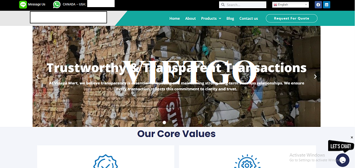 Với mạng lưới rộng rãi tại hơn 20 quốc gia trên toàn thế giới như Ấn Độ, Sri Lanka, Bangladesh, Pakistan và Hàn Quốc, ██████████ đã tạo dựng uy tín vững chắc trong ngành thương mại giấy và vật liệu tái chế thông qua cam kết về chất lượng, minh bạch và trách nhiệm với môi trường. Vừa đảm bảo nguồn cung ổn định từ các cơ sở tái chế, vừa hỗ trợ tối đa khách hàng trong vận hành chuỗi cung ứng quốc tế, công ty vận hành theo chuẩn mực quốc tế về pháp lý và đạo đức kinh doanh.