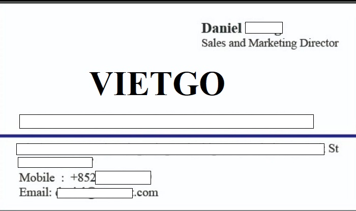 Vừa qua, VIETGO vừa nhận được thông tin từ ông Daniel - vị khách hàng đến từ Hồng Kông về đơn hàng áo T-shirt, phục vụ cho cho cầu của đối tác kinh doanh tại thị trường Vương quốc Anh. Được biết, ông Daniel là đại diện đến từ công ty ██████████, có địa chỉ tại ██████████, Hồng Kông. Công ty vị khách hàng chuyên nhập khẩu các sản phẩm may mặc từ thị trường nước ngoài, sau đó cung cấp và phân phối cho các đối tác kinh doanh quốc tế, chủ yếu là các quốc gia châu Âu.