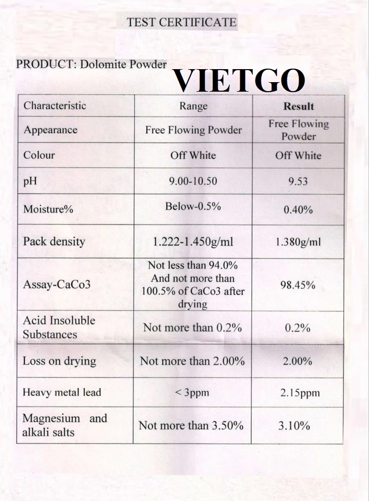 Bên cạnh đơn hàng clinker mà tôi đã liên hệ với VIETGO. Khách hàng của tôi hiện cũng đang có nhu cầu nhập khẩu bột dolomite có độ trắng trên 90%. Tôi hy vọng VIETGO sẽ giúp tôi kết nối với các nhà cung cấp của sản phẩm này.”