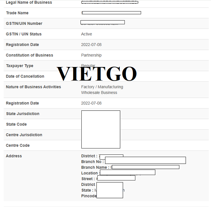 Địa chỉ công ty: ██████████, Ấn Độ