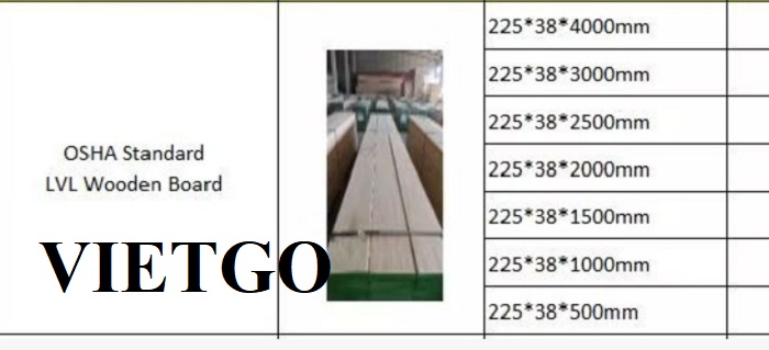Chia sẻ về đơn hàng hiện tại, cô Jean cần nhập khẩu sản phẩm gỗ dán LVL để phục vụ dự án kinh doanh sắp tới. Cô đã liên hệ cũng như trao đổi với Vietgo về đơn hàng và rất mong sẽ nhận được báo giá sớm từ phía Nhà cung cấp. Quý nhà cung cấp nào có thể đáp ứng được đơn hàng của cô Jean vui lòng liên hệ qua địa chỉ liên hệ dưới đây.