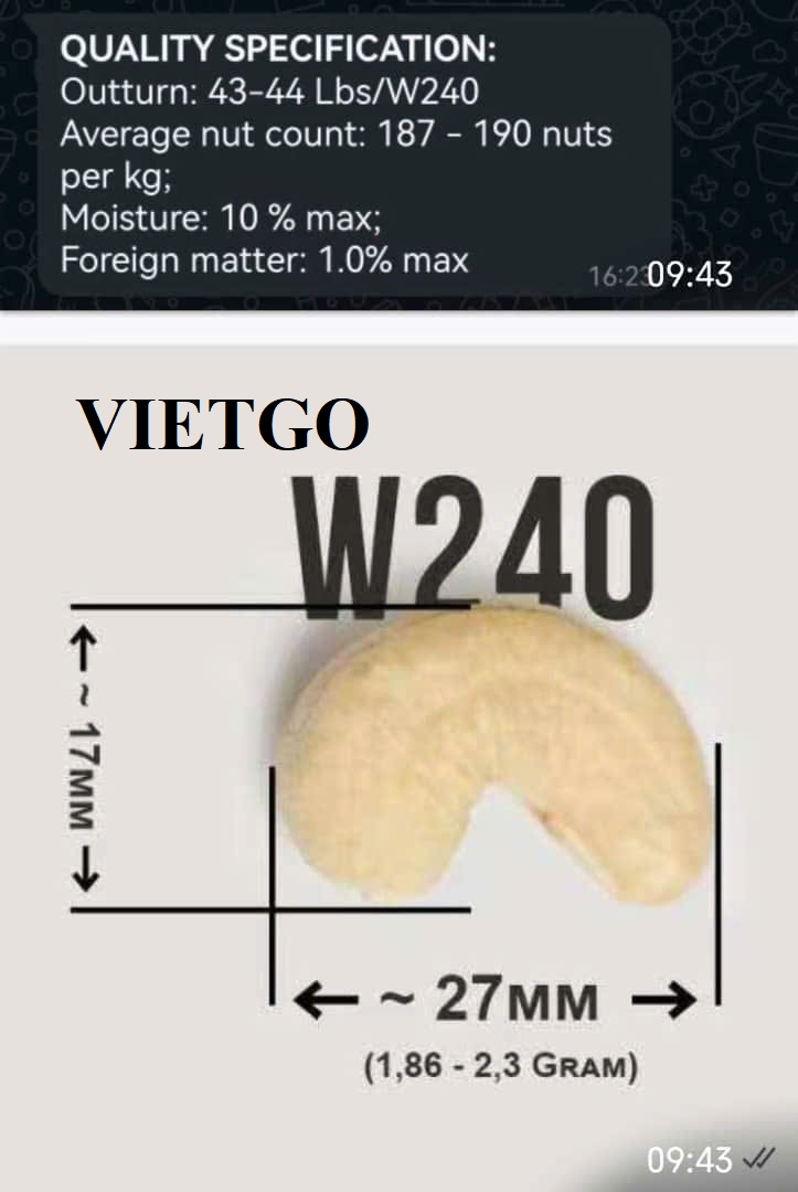 2. Loại sản phẩm: Hạt điều W240