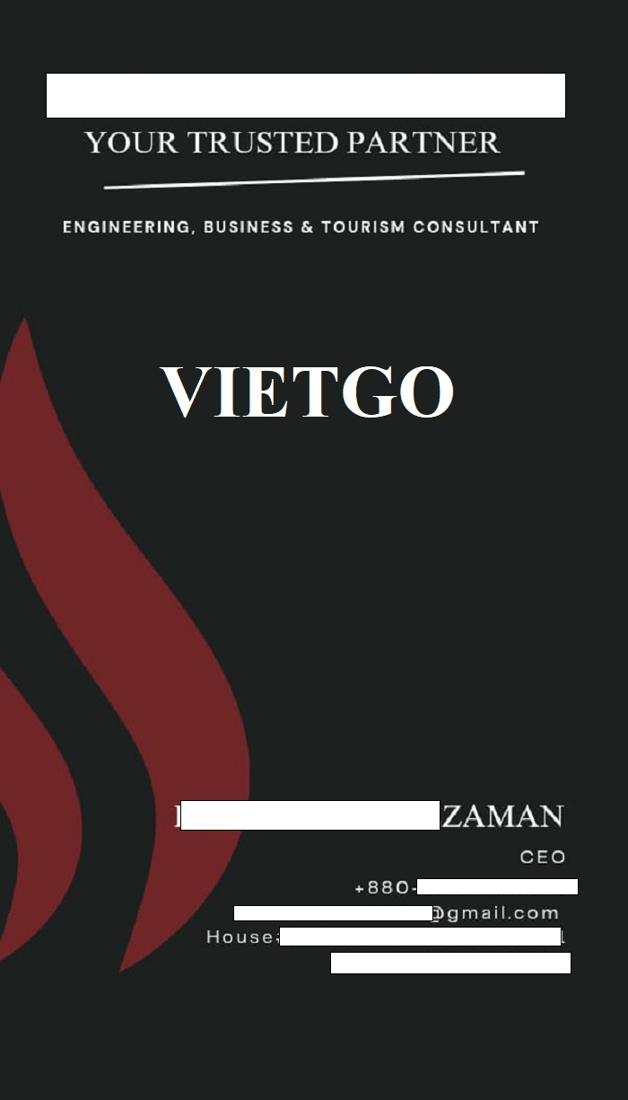 Bên cạnh các thông tin liên quan đến đơn hàng, ông Zaman cũng chia sẻ với VIETGO một số thông tin về công ty của ông: “Tôi hiện đang là CEO của công ty ██████████ tại ██████████, Bangladesh. Công ty chúng tôi là một công ty thương mại nên chúng tôi kinh doanh rất nhiều mặt hàng khác nhau. Khách hàng sẽ gửi cho chúng tôi những thông tin và yêu cầu sản phẩm về nhu cầu của họ. Tiếp theo đó, chúng tôi sẽ tiến hành tìm kiếm và sàng lọc những nhà cung cấp có khả năng đáp ứng yêu cầu đơn hàng. Nhờ quy trình làm việc chặt chẽ, chúng tôi đã xây dựng được lòng tin đối với khách hàng cũng như mở rộng mạng lưới khách hàng không chỉ tại Bangladesh mà còn cả ở những quốc gia khác.
