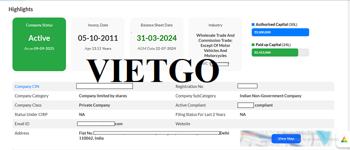 ██████████ Pvt. Ltd. là một doanh nghiệp tư nhân hoạt động trong lĩnh vực thương mại và phân phối, có trụ sở tại New Delhi, Ấn Độ. Với nhiều năm kinh nghiệm, công ty đã xây dựng được mạng lưới kinh doanh rộng khắp và duy trì quan hệ hợp tác với nhiều đối tác trong và ngoài nước.