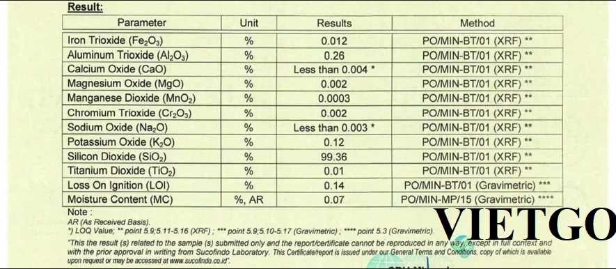 Vừa qua, VIETGO nhận được lời đề nghị báo giá từ ông Aslam – Giám đốc điều hành của công ty ██████████████████████████████ – về đơn hàng nhập khẩu cát silica sang thị trường Pakistan.