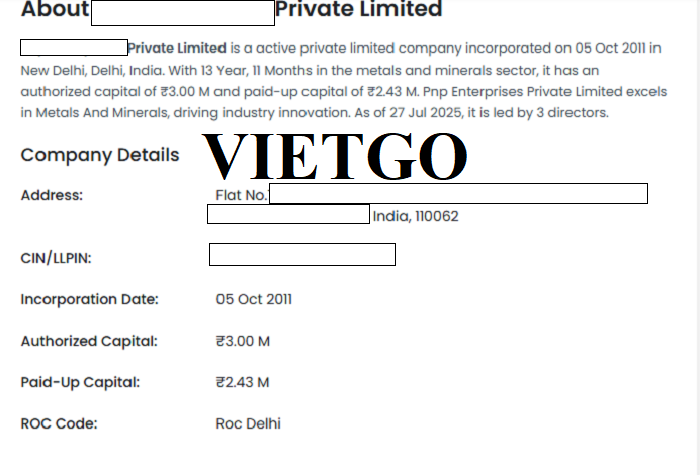 ██████████ Pvt. Ltd. là một doanh nghiệp tư nhân hoạt động trong lĩnh vực thương mại và phân phối, có trụ sở tại New Delhi, Ấn Độ. Với nhiều năm kinh nghiệm, công ty đã xây dựng được mạng lưới kinh doanh rộng khắp và duy trì quan hệ hợp tác với nhiều đối tác trong và ngoài nước.