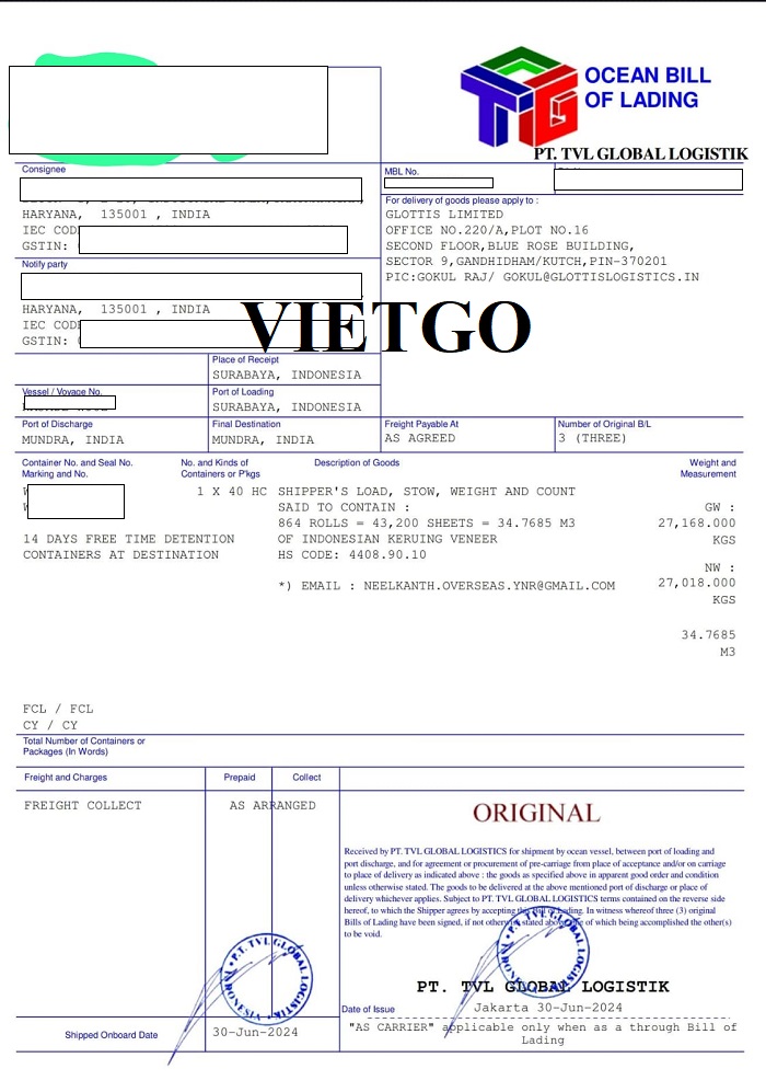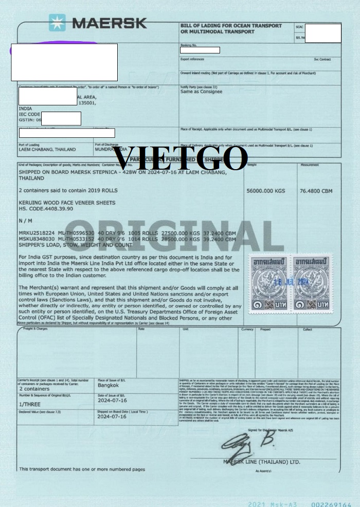 Dưới đây là hình ảnh các bản vận đơn vị khách hàng đã nhập khẩu thành công sản phẩm công ty từ cảng Libreville, Gabon/ cảng Laem Chabang, Thái Lan/ cảng Surabaya, Indonesia đến cảng Mundra, Ấn Độ.