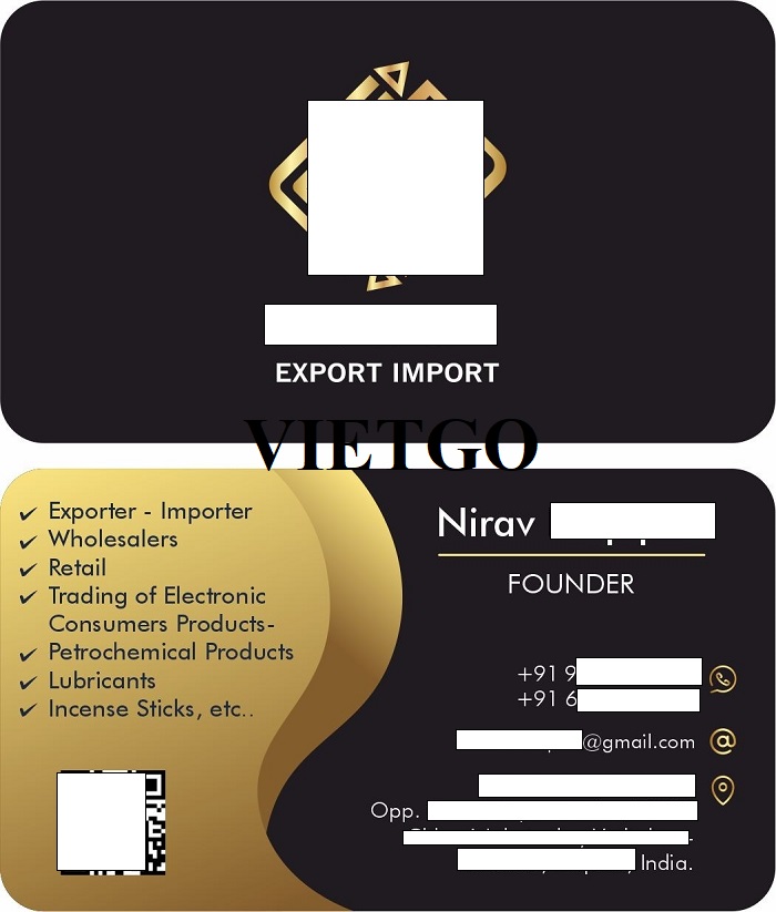 ██████████ thực hiện giao dịch xuất – nhập khẩu với rất nhiều mặt hàng như chân hương, bột hương, đá marble, các sản phẩm trang trí nội thất, vải may mắc, các sản phẩm nôn nghiệp, v.v. Đây đều là các sản phẩm có nhu cầu cao không chỉ tại thị trường nội địa tại Ấn Độ mà còn ở nhiều quốc gia khác. Công ty của Nirav luôn nhận được những phản hồi tích cực từ khách hàng về các dịch vụ mà công ty ông cung cấp.